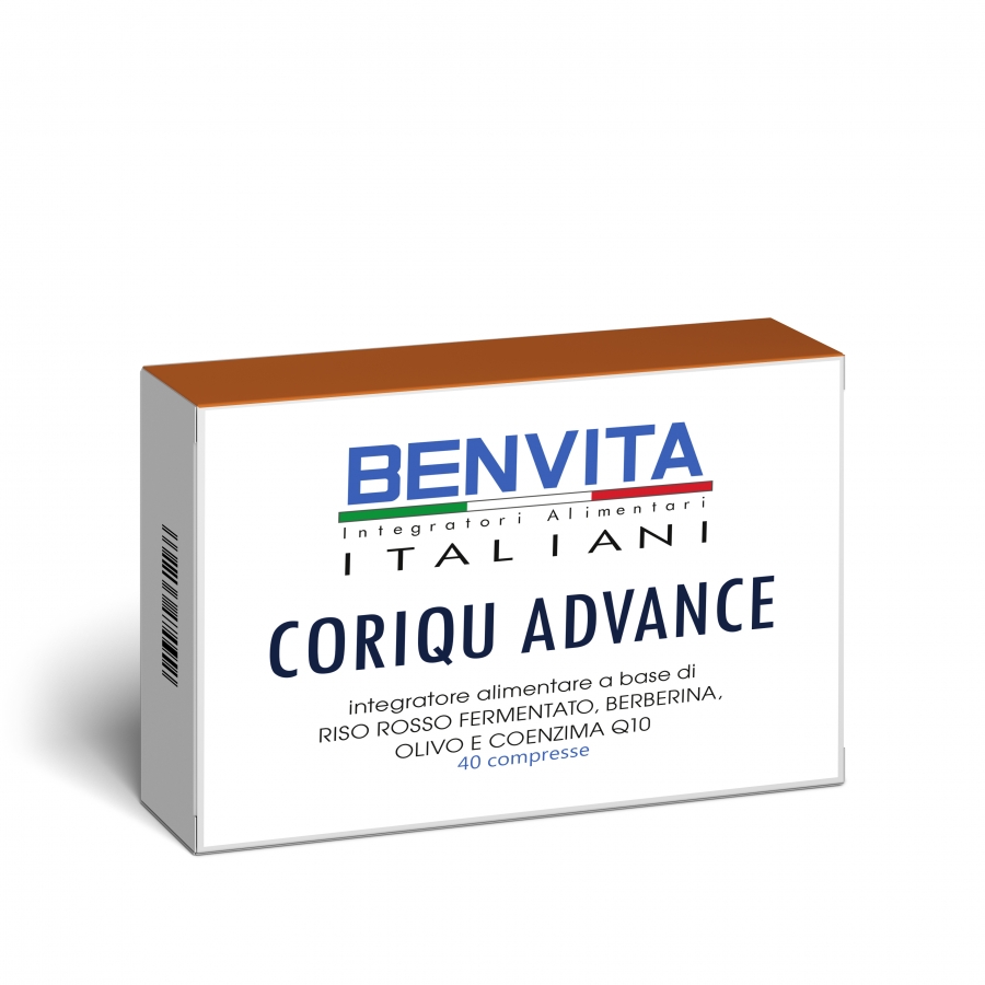 Indicazioni: CORIQU ADVANCE è un integratore alimentare da consigliare alle persone che presentano livelli di colesterolo oltre i valori di guardia ma non sono ancora in terapia con le statine, spiegando che il primo effetto collaterale facilmente riscontrabile della terapia farmacologica è legato ai disturbi muscolari (crampi, affaticamento e dolori), indotti dalla carenza di Coenzima Q10. Le statine infatti riducono la produzione endogena di colesterolo dal fegato inibendo l’enzima HMG-Co A reduttasi coinvolto però anche nella via biosintetica del Coenzima Q10 che serve per produrre energia cellulare particolarmente importante per i muscoli, considerando che anche il cuore è un muscolo! CORIQU ADAVANCE favorisce una riduzione del colesterolo grazie alla sinergia tra Monacolina K da Riso rosso fermentato, che interviene sulla produzione endogena di colesterolo agendo a livello dell’enzima HMG-Co A reduttasi ma con un’azione più naturale rispetto le statine di sintesi, e Berberina, che aumenta l’attività e il numero dei recettori epatici per le LDL, promuovendo la diminuzione ematica di colesterolo LDL. La formula è arricchita con Olivo titolato in oleuropeina e idrossitirosolo, che proteggono le LDL dalle modificazioni ossidative indotte dai radicali liberi e favoriscono un aumento del colesterolo HDL. Inoltre, il Coenzima Q10 permette di non intaccare i valori di ubichinone del corpo e di esercitare un’azione antiossidante aggiuntiva contro i radicali liberi responsabili dell’ossidazione delle LDL.