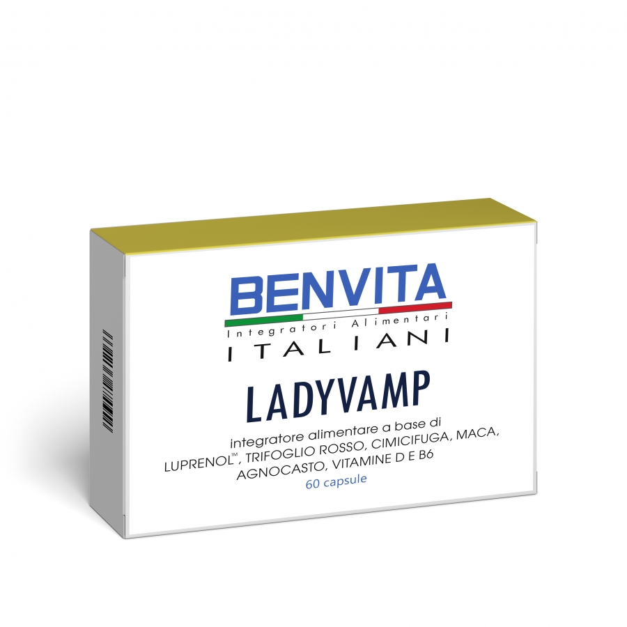 Ingredienti: LuprenolTM [luppolo (Humulus lupulus L.) strobilo (infiorescenza femminile) estratto secco tit. 0,03% 8-prenilnaringenina (8-PN)], trifoglio rosso (Trifolium pratense L.) parte aerea con fiori estratto secco tit. 40% isoflavoni, capsula (agente di rivestimento: idrossi-propilmetilcellulosa), cimicifuga (Cimicifuga racemosa (L.) Nutt.) rizoma estratto secco tit. 2,5% glicosidi triterpenici, maca (Lepidium meyenii Walp.) radice estratto secco tit. 2,5% beta-sitosterolo), agnocasto (Vitex agnus-castus L.) frutto estratto secco tit. 0,5% agnusidi calcolati come agnuside, agenti antiagglomeranti: sali di magnesio degli acidi grassi, biossido di silicio; colecalciferolo (vitamina D3), cloridrato di piridossina (vitamina B6). LuprenolTM è un trademark di Biosearch Life